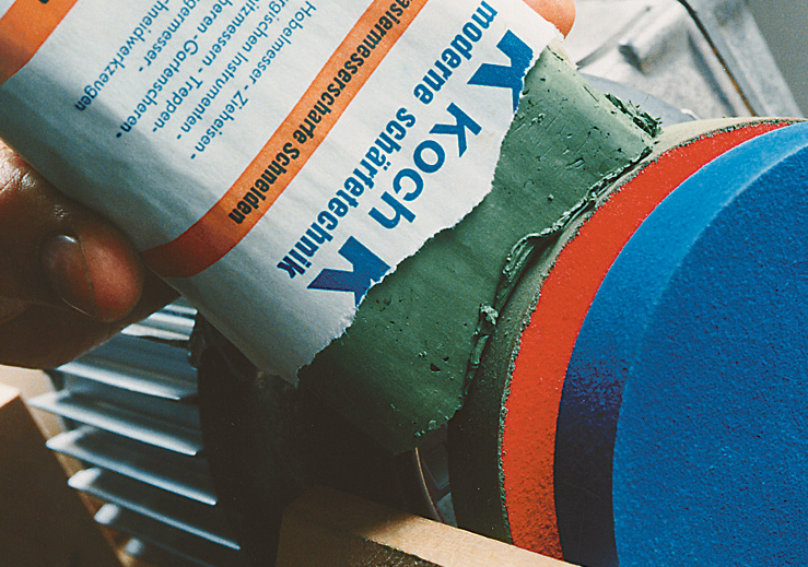 Zelená brusná pasta Koch pro všechny ostřící operace.